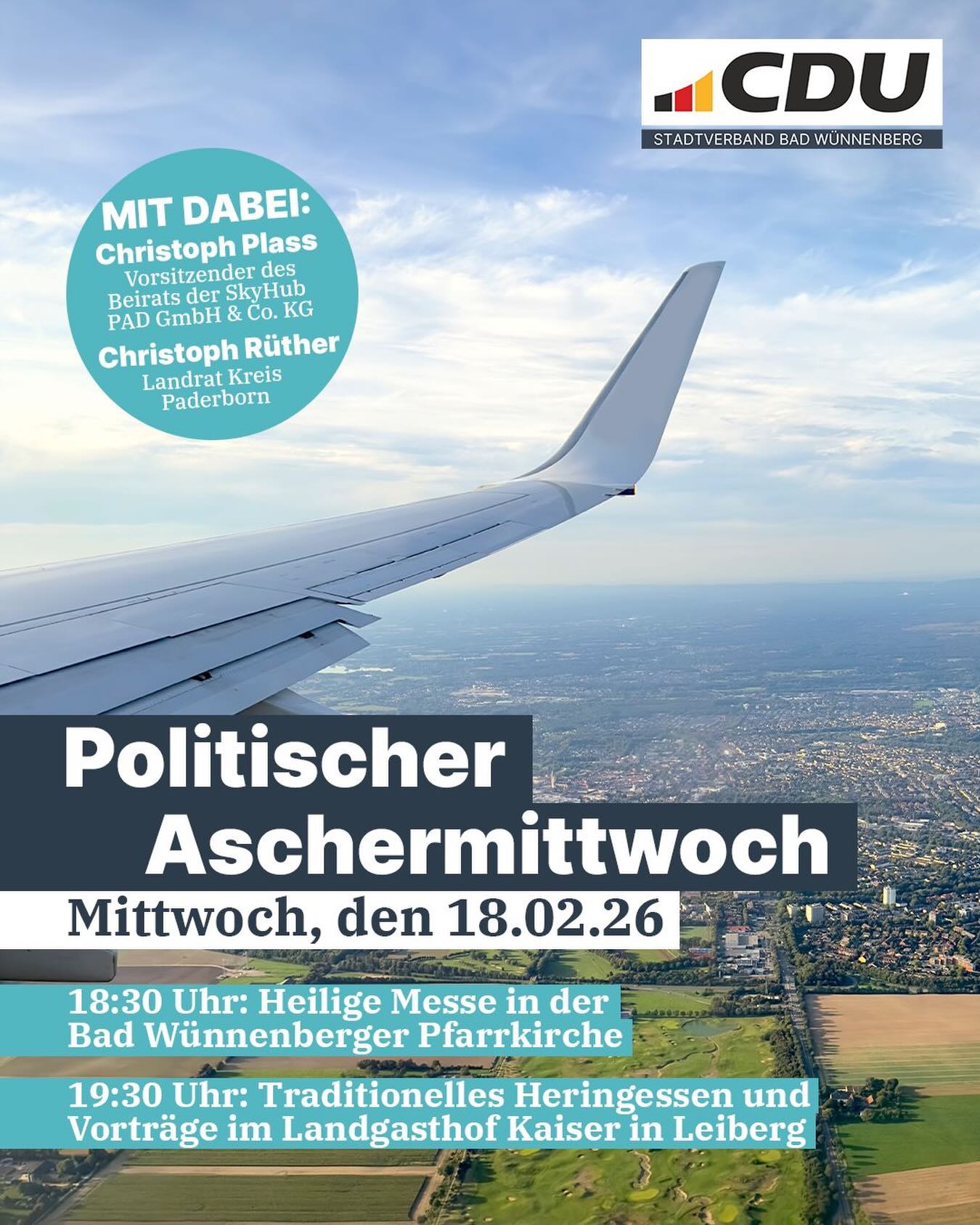 Der CDU-Stadtverband Bad Wünnenberg lädt herzlich zum Politischen Aschermittwoch ein.